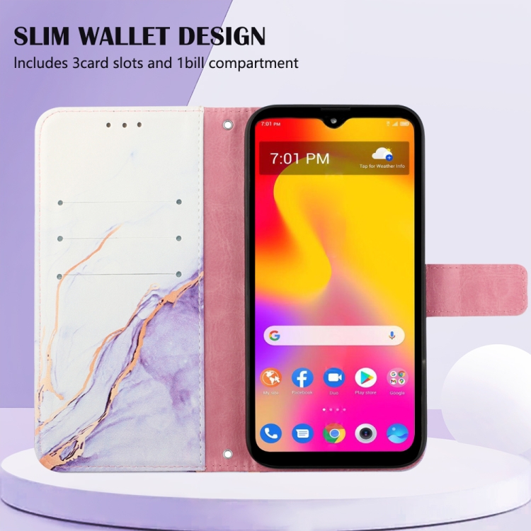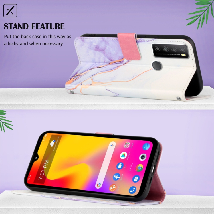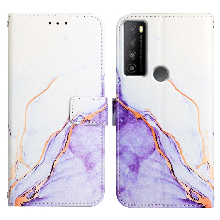 Funda de Teléfono TCL 30Xl (2022) Pt003 Cuero con Tapa y Patrón Mármol (Blanco Púrpura)
