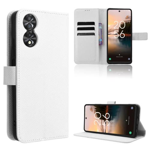 Funda de Cuero para TCL 40 Nxtpaper 4G con Textura de Diamante (Blanco)
