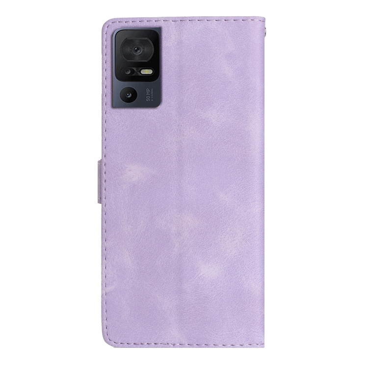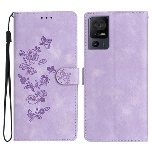 Funda de Cuero para TCL 40 Se con Estampado de Mariposa y Flores (Púrpura)