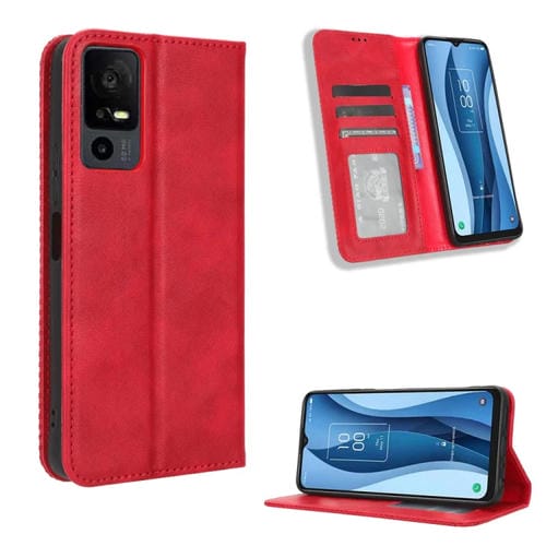 Funda de Cuero para TCL 40 Xe 5G con Hebilla Magnética y Textura Retro (Rojo)