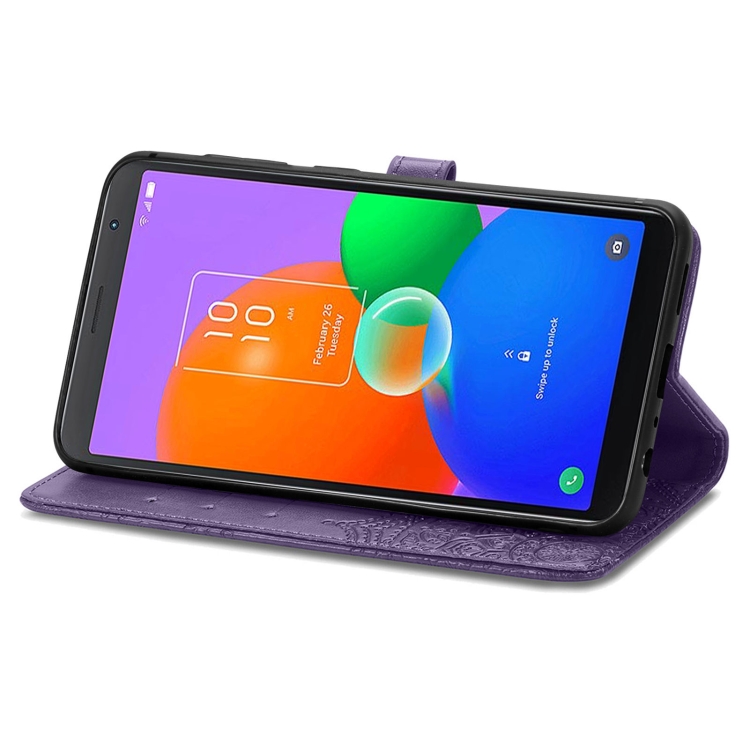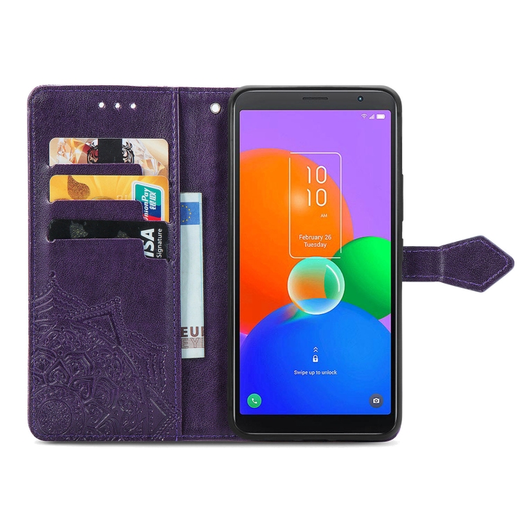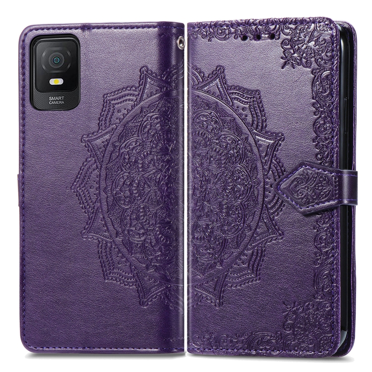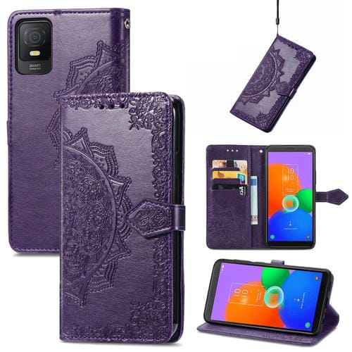 Funda de Cuero para TCL 403 Mandala Flower en Relieve (Púrpura)