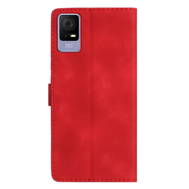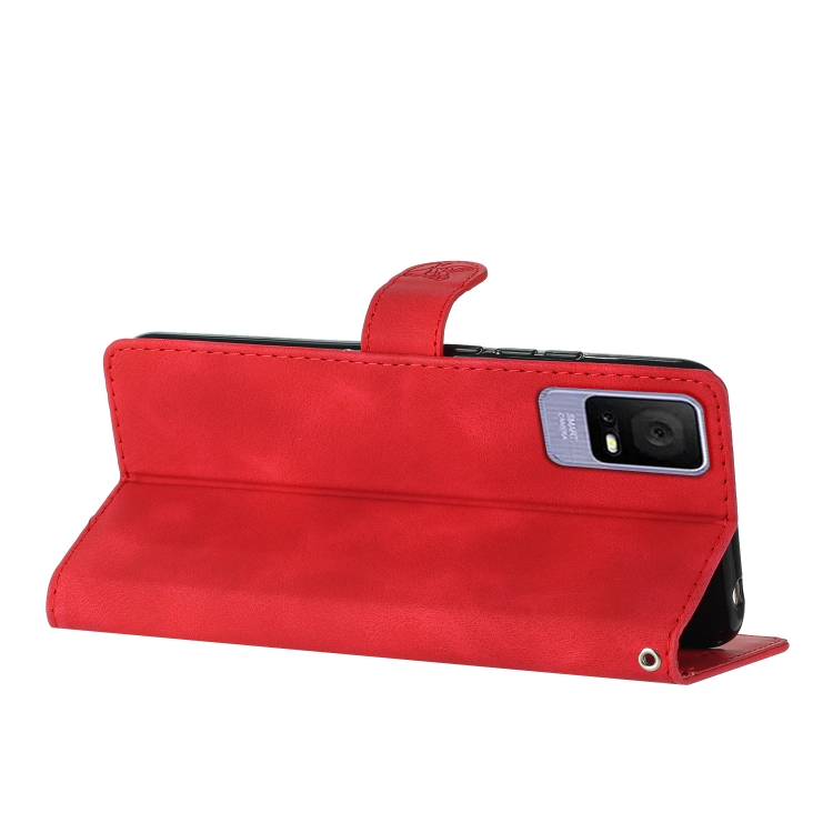 Funda de Cuero para TCL 405 / 406 / 408 con Estampado de Mariposa y Flores (Rojo)