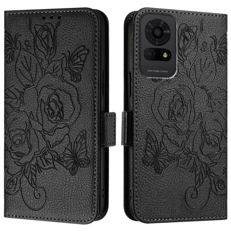 Funda de Cuero Antirrobo RFID para TCL 50 Le 5G con Relieve Rosa (Negro)