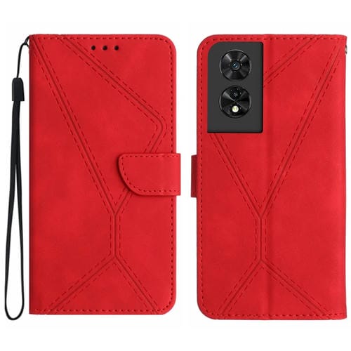 Funda de Cuero para TCL 505 con Costuras En Relieve (Rojo)