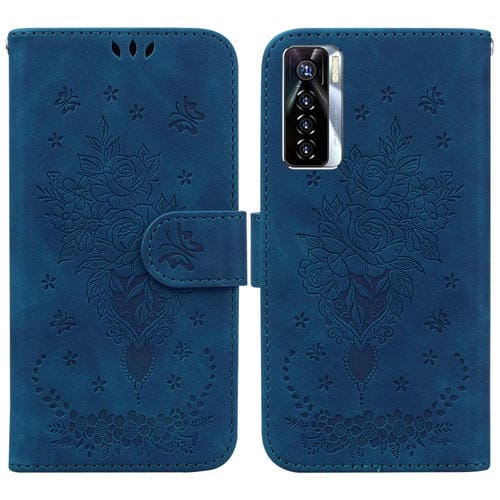 Funda de Cuero Rossed Butterfly para Tecno Camon 17 Pro (Azul)