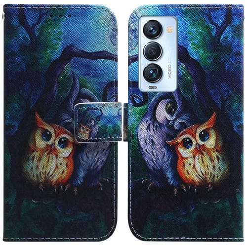 Funda para Tecno Camon 18 de Cuero con Dibujo Pintura al Óleo Owl (Premier)