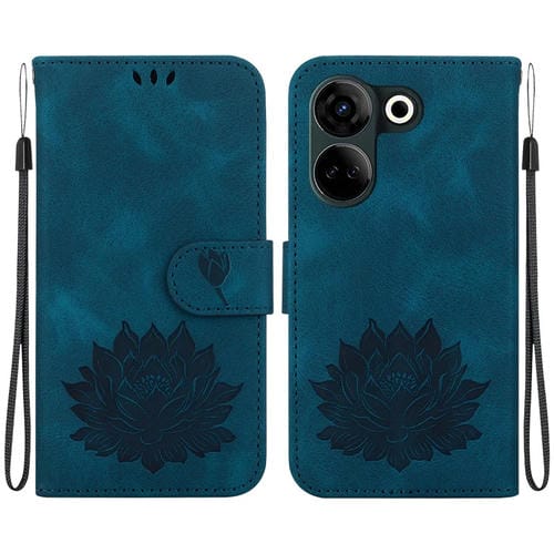 Funda de Cuero para Tecno Camon 20 y Camon 20 Pro 4G con Relieve de Loto (Azul Oscuro)