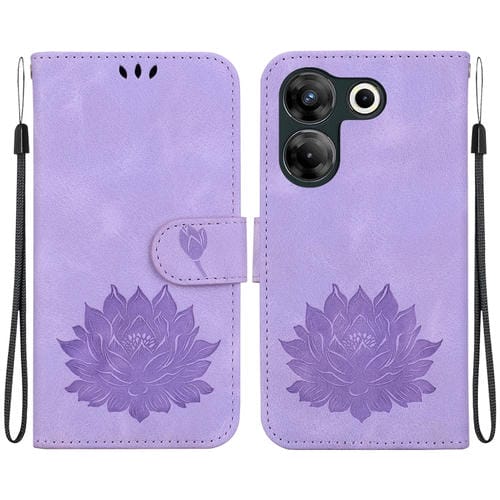 Funda de Cuero En Relieve para Tecno Camon 20 Pro 5G Lotus (Púrpura)