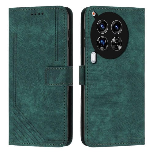 Funda de Cuero para Tecno Camon 30 4G y 5G con Patrón de Rayas y Cordón Largo (Verde)