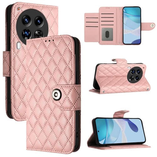 Funda de Cuero para Tecno Camon 30 Premier 5G con Tapa, Textura Romboidal y Cordón (Rosa Coral)