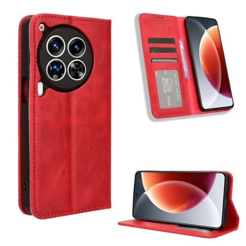 Funda para Tecno Camon 30 Premier 5G de Cuero con Textura Retro y Hebilla Magnética (Rojo)