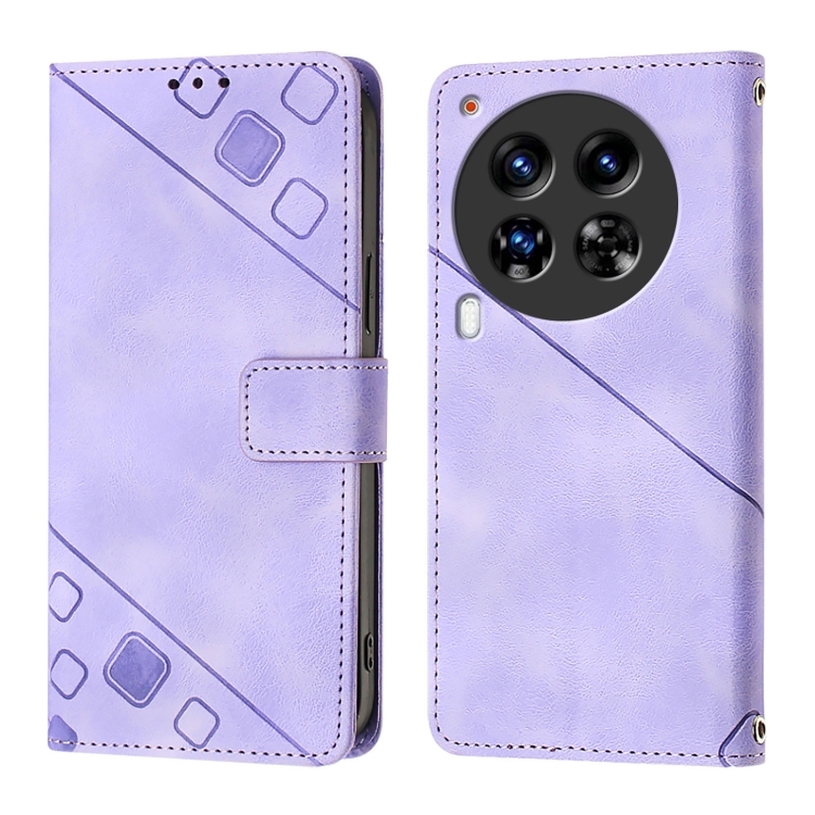 Funda de Cuero para Tecno Camon 30 Premier 5G Skin Feel en Relieve (Púrpura Claro)