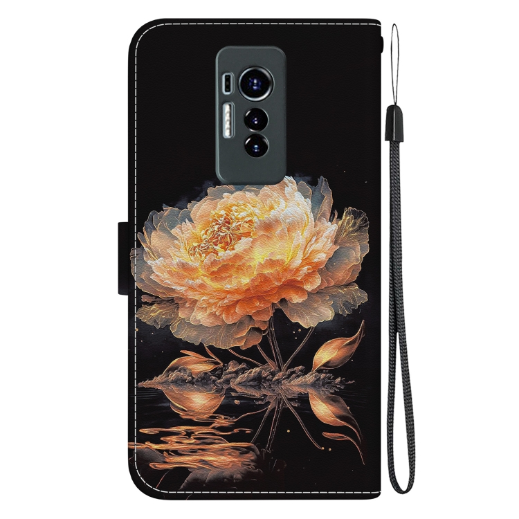 Funda para Tecno Phantom X Cuero con Dibujo Coloreado Peonía Dorada