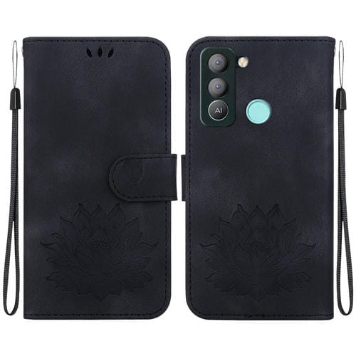 Funda de Cuero para Tecno Pop 5 Lte con Relieve Lotus (Negro)