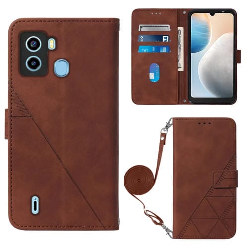 Funda de Cuero Flip 3D en Relieve para Tecno Pop 6 Crossbody (Marrón)
