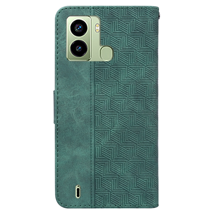 Funda de Cuero Flip para Tecno Pop 6 Fingerprint con Relieve Geométrico (Verde)
