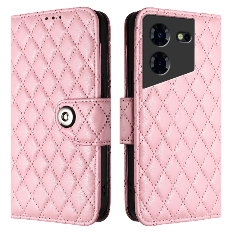 Funda de Cuero para Tecno Pova 5 Pro 5G con Tapa, Textura Romboidal y Cordón (Rosa)