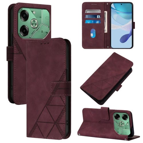 Funda de Cuero para Tecno Pova 6 4G Crossbody con Tapa en Relieve 3D (Rojo Vino)