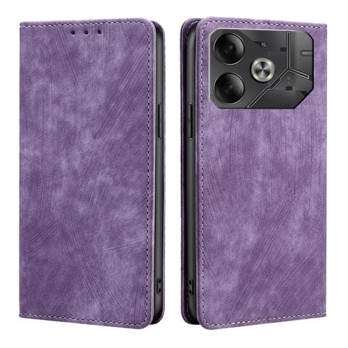 Funda de Cuero Magnética para Tecno Pova 6 5G con Rfid y Cepillo Antirrobo (Púrpura)