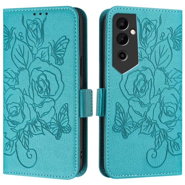 Funda de Cuero Antirrobo RFID para Tecno Pova Neo 2 con Relieve (Azul Claro)