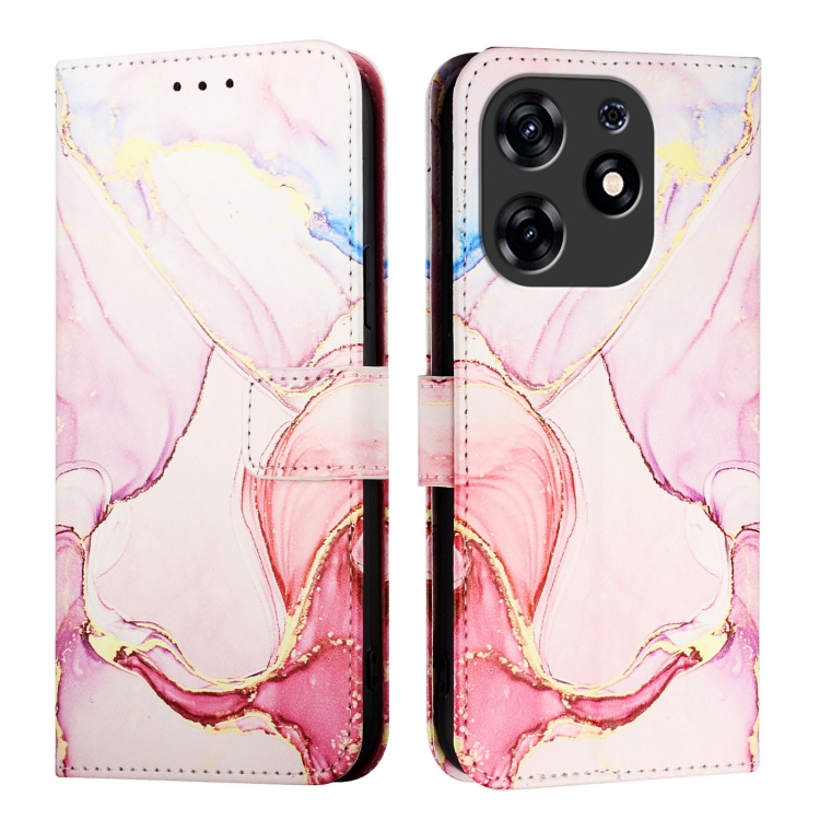 Funda de Cuero para Tecno Spark 10 Pro Pt003 con Tapa y Patrón de Mármol (Oro Rosa)