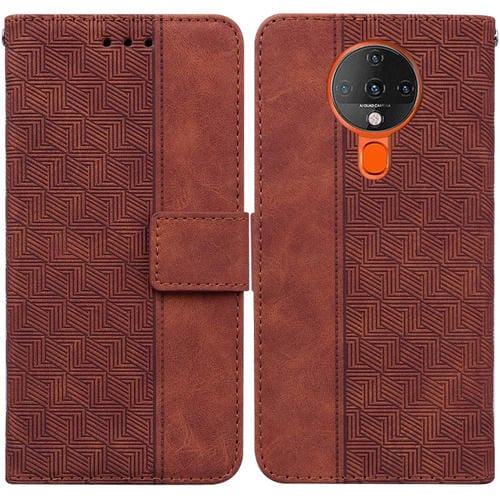 Funda para Tecno Spark 6 de Cuero en Relieve Geométrico (Marrón)