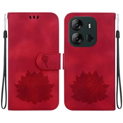 Funda de Cuero para Tecno Spark Go 2023 y Pop 7 Pro con Relieve de Loto (Rojo)