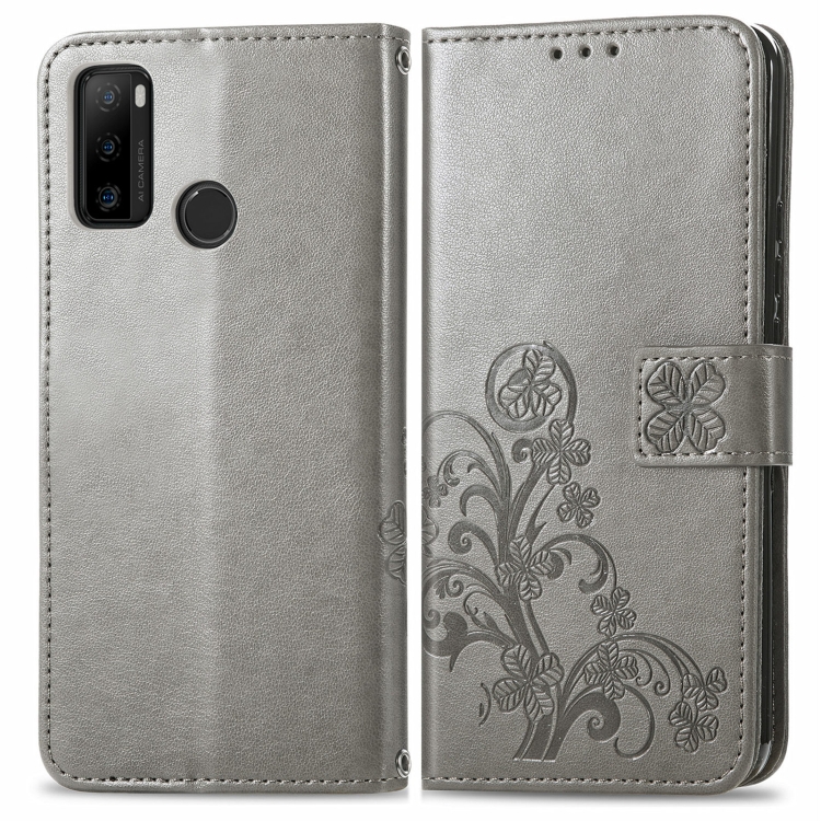 Funda de Cuero para Ulefone Note 10 con Cierre de Cuatro Hojas, Hebilla, Ranura para Tarjeta y Soporte (Gris)