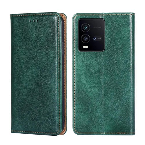 Para Vivo Iqoo 10 Estuche para Teléfono de Cuero Magnético de Color Sólido con Aceite Brillante (Verde)