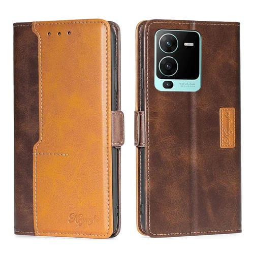 Para Vivo S15 Pro 5G Contrast Color Side Buckle Leather Case (Marrón Oscuro + Dorado)