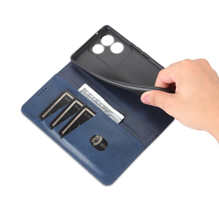 Para Vivo S17E Azns Funda de Teléfono de Cuero con Textura de Becerro Magnético (Azul Oscuro)