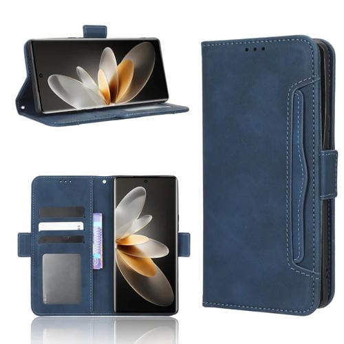 Para Vivo V27 / V27 Pro / S16 / S16 Pro Skin Feel Becerro Textura Ranuras para Tarjetas Funda de Cuero para Teléfono (Azul)