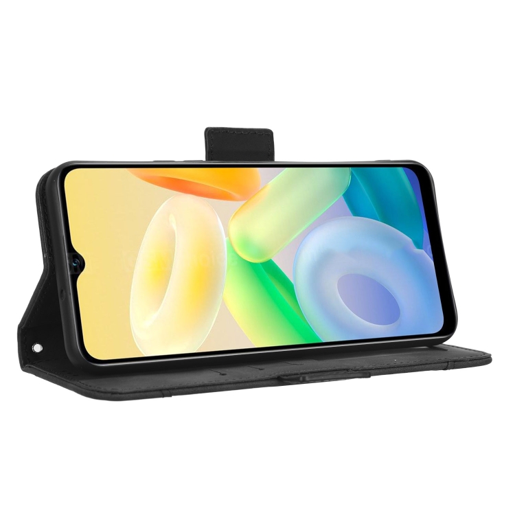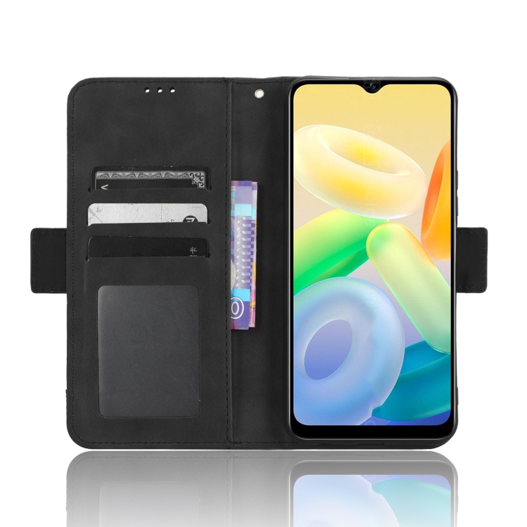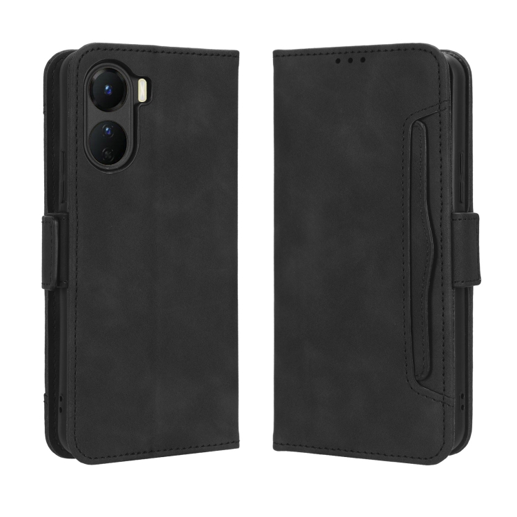 Para Vivo Y16 / Iqoo Z7I Skin Feel Becerro Textura Ranuras para Tarjetas Funda de Cuero para Teléfono (Negro)