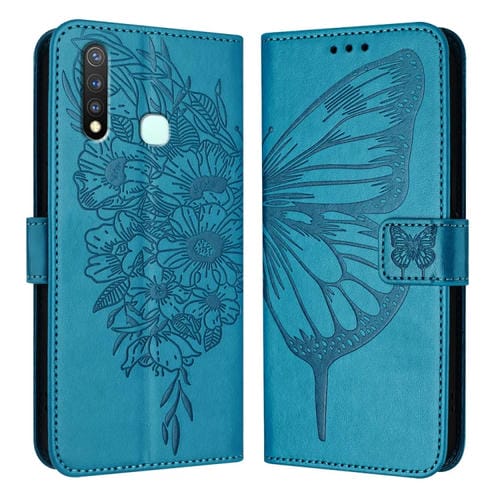 Para Vivo Y19/Y5S/U3/U20/Z5I Funda para Teléfono de Cuero con Mariposa En Relieve (Azul)