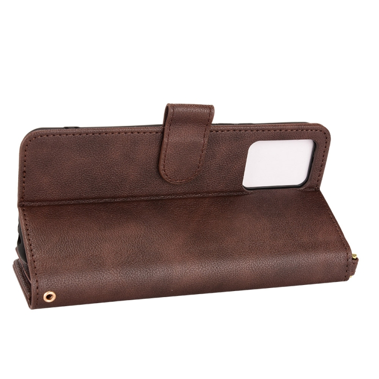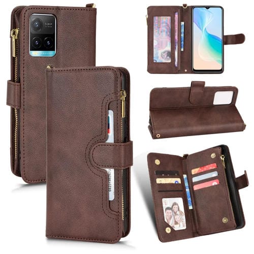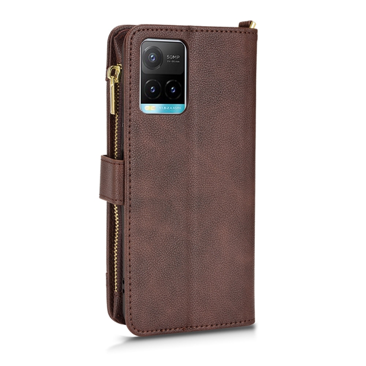 Para Vivo Y21 2021 / Y21S / Y33 Litchi Texture Funda de Cuero con Cremallera para Teléfono (Marrón)