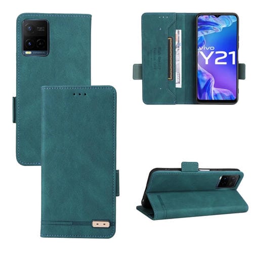 Para Vivo Y21 / Y33S Funda de Cuero de Cierre Magnético (Verde)