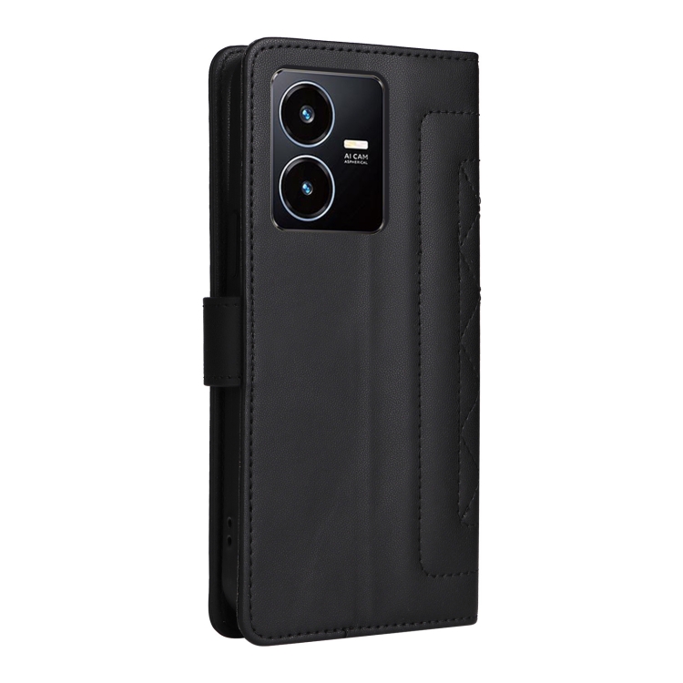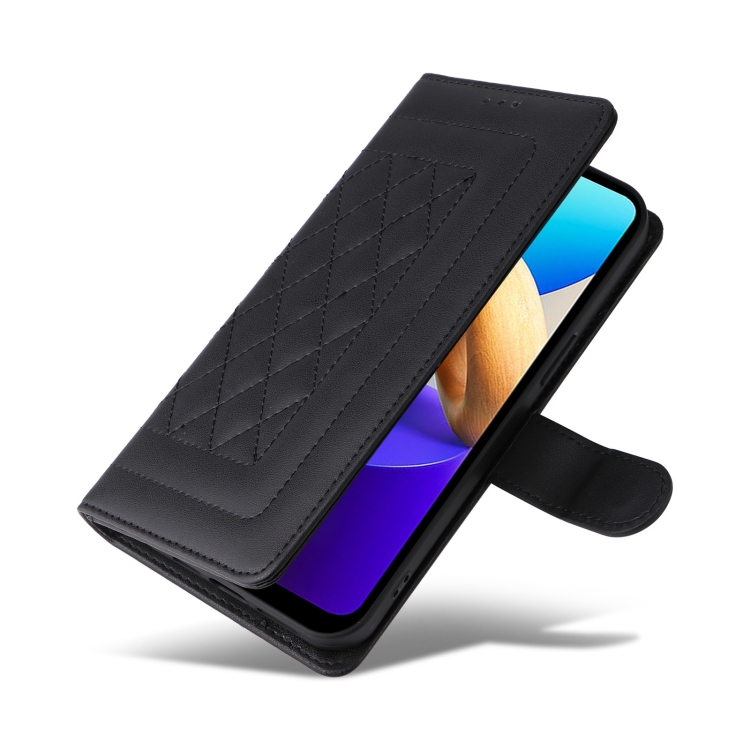 Para Vivo Y22S / Y35 Funda para Teléfono con Tapa de Cuero Diamond Lattice (Negro)