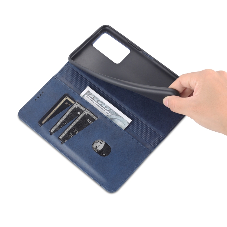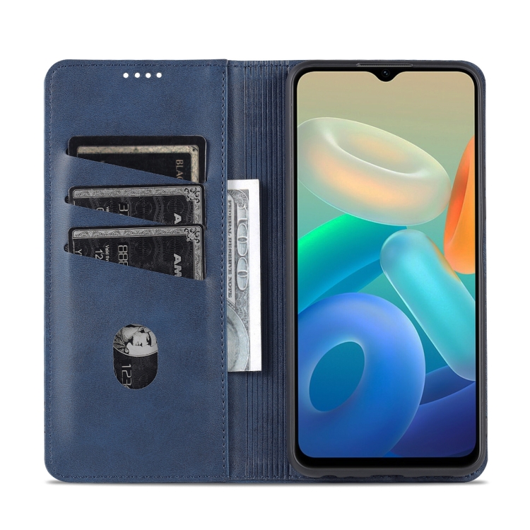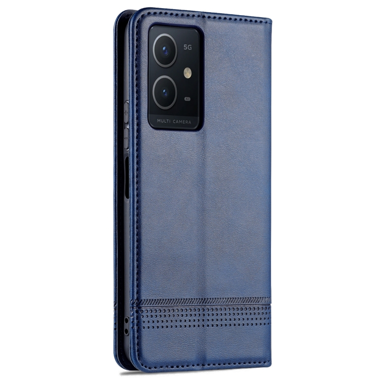 Para Vivo Y33S 5G / Y75 5G Azns Magnético Texture Texture Flip de Cuero de Cuero (Azul Oscuro)