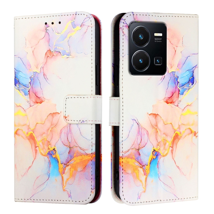 Para Vivo Y35 4G / Y22S 4G / Y22 4G Global Pt003 Funda de Cuero con Tapa con Patrón de Mármol (Blanco Mármol)