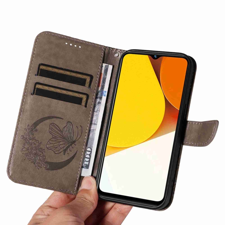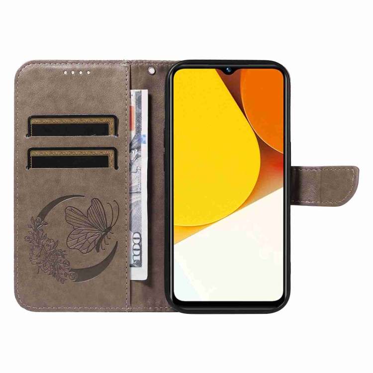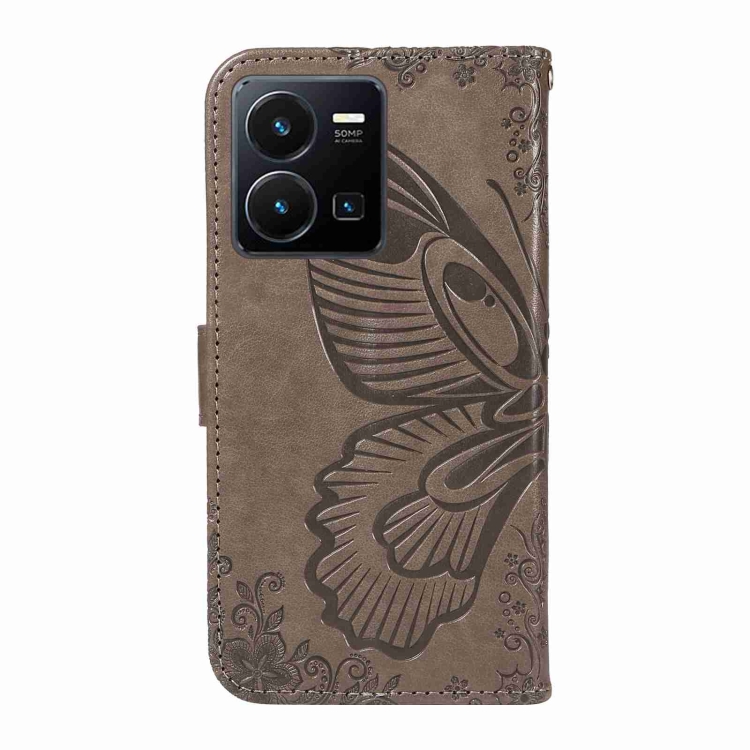 Para Vivo Y35 / Y22S / Y22 Funda para Teléfono de Cuero con Relieve de Mariposa de Cola de Golondrina (Gris)