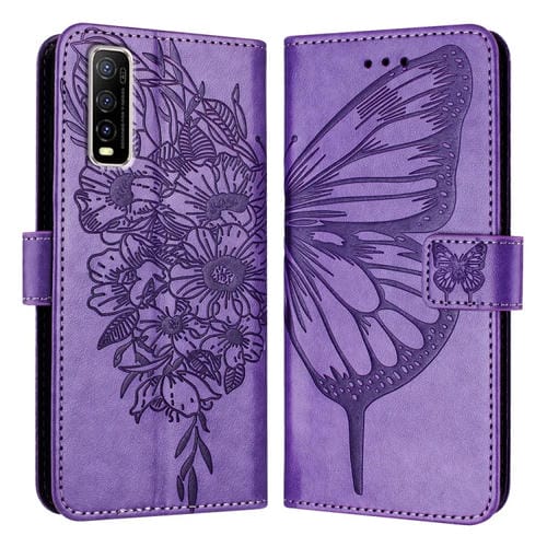 Para Vivo Y70S Funda de Cuero con Mariposa En Relieve (Púrpura Claro)