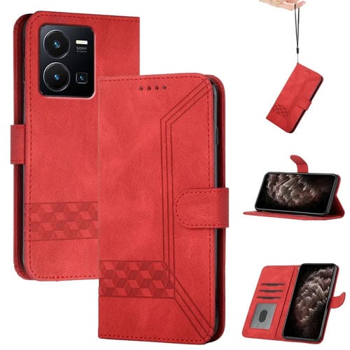 Para Vivo Y77E 5G Cubic Skin Feel Funda de Cuero con Tapa para Teléfono (Rojo)