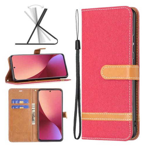 Para Xiaomi 12 Color Denim Texture Texture Case de Cuero (Rojo)