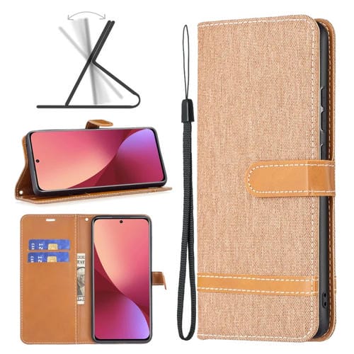 Para Xiaomi 12 Color Denim Texture Texture Cuero Case (Marrón)