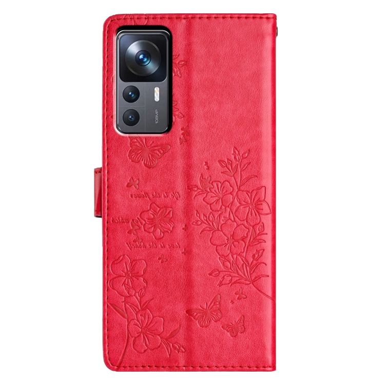 Para Xiaomi 12T / 12T Pro Funda de Cuero para Teléfono con Mariposas y Flores (Rojo)