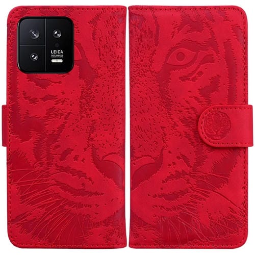 Para Xiaomi 13 5G Caja del Teléfono de Cuero con Estampado de Tigre En Relieve (Rojo)
