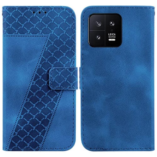 Para Xiaomi 13 5G Funda de Teléfono de Cuero En Relieve En Forma de 7 (Azul)