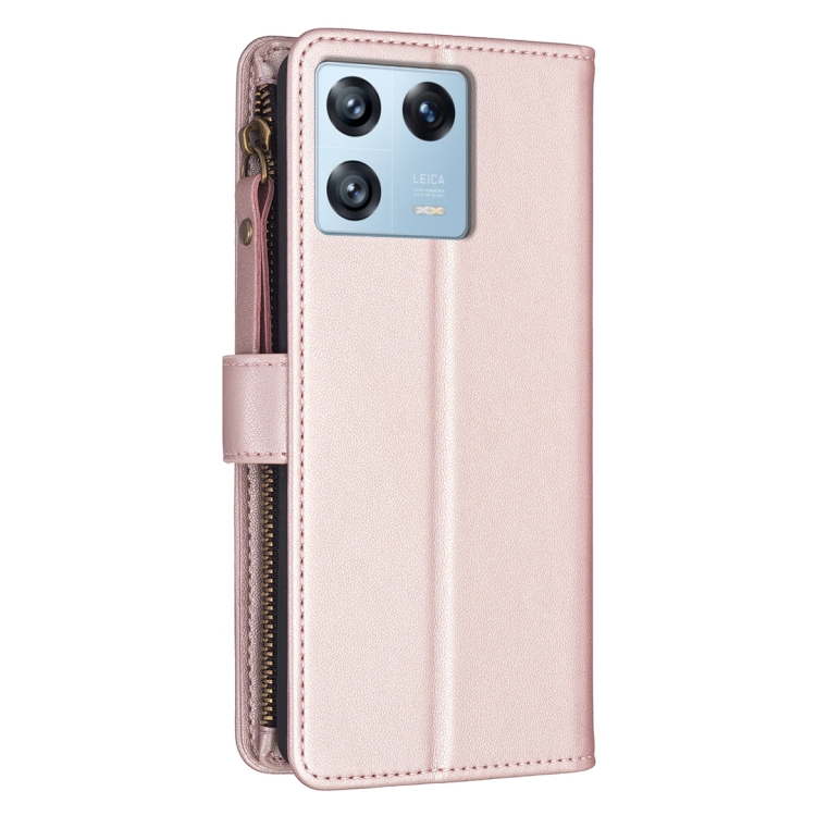 Para Xiaomi 13 Pro 9 Ranuras para Tarjetas Cremallera Cartera Funda de Cuero con Tapa para Teléfono (Oro Rosa)