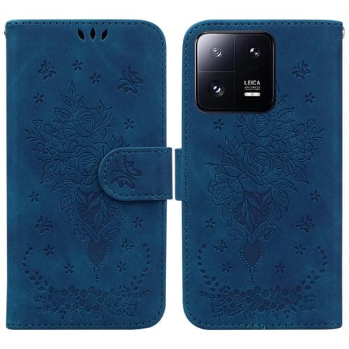 Para Xiaomi 13 Pro Butterfly Rose Estuche para Teléfono de Cuero En Relieve (Azul)