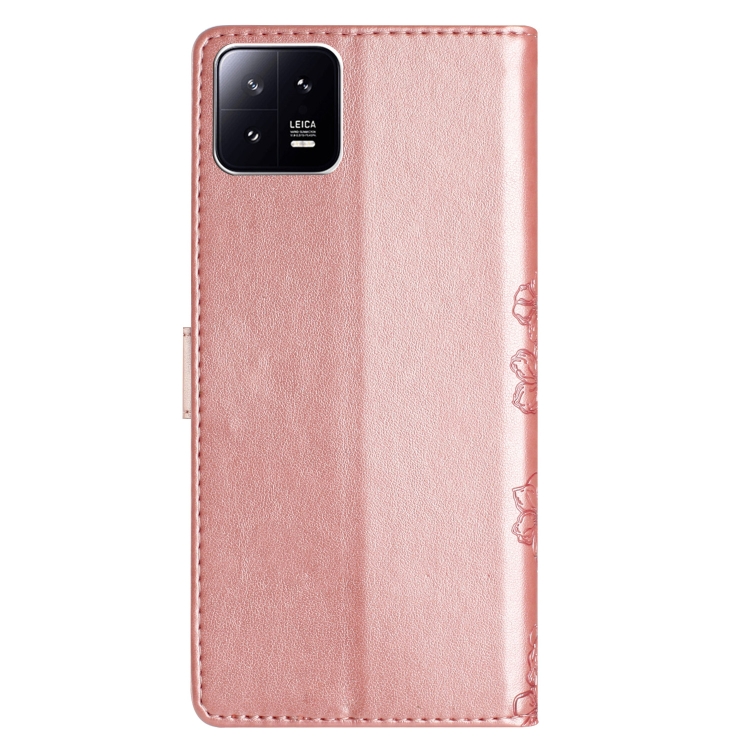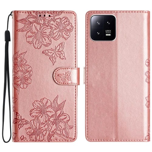 Para Xiaomi 13 Pro Cherry Blossom Butterfly Skin Feel Funda para Teléfono de Pu En Relieve (Oro Rosa)